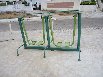 Equipamentos de ginástica estão sendo instalados em via pública e estarão a disposição da comunidade, para quem desejar desenvolver uma atividade física sem nenhum ônus.